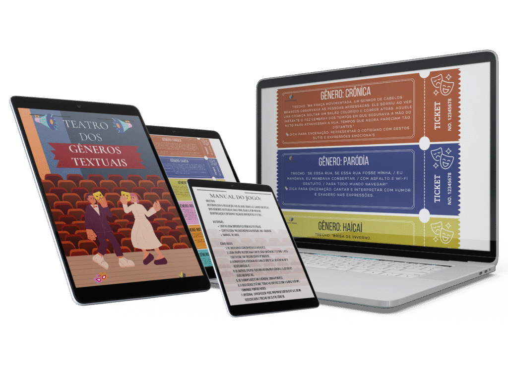 Neste jogo, os alunos precisam representar os gêneros textuais em forma de teatro! Cada grupo recebe um gênero e deve fazer a encenação que já vem prontinha sem revelar qual é — os demais grupos devem observar e adivinhar, justificando sua resposta.