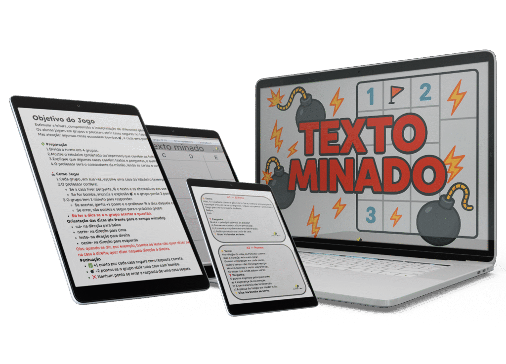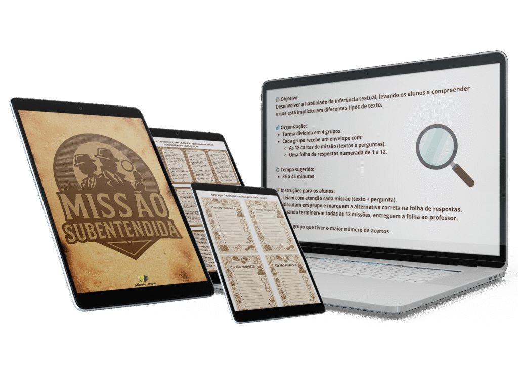 Neste jogo de interpretação implícita, os grupos recebem missões com textos curtos e perguntas que exigem inferência. A cada resposta correta, os grupos avançam em uma missão coletiva para descobrir um enigma final.